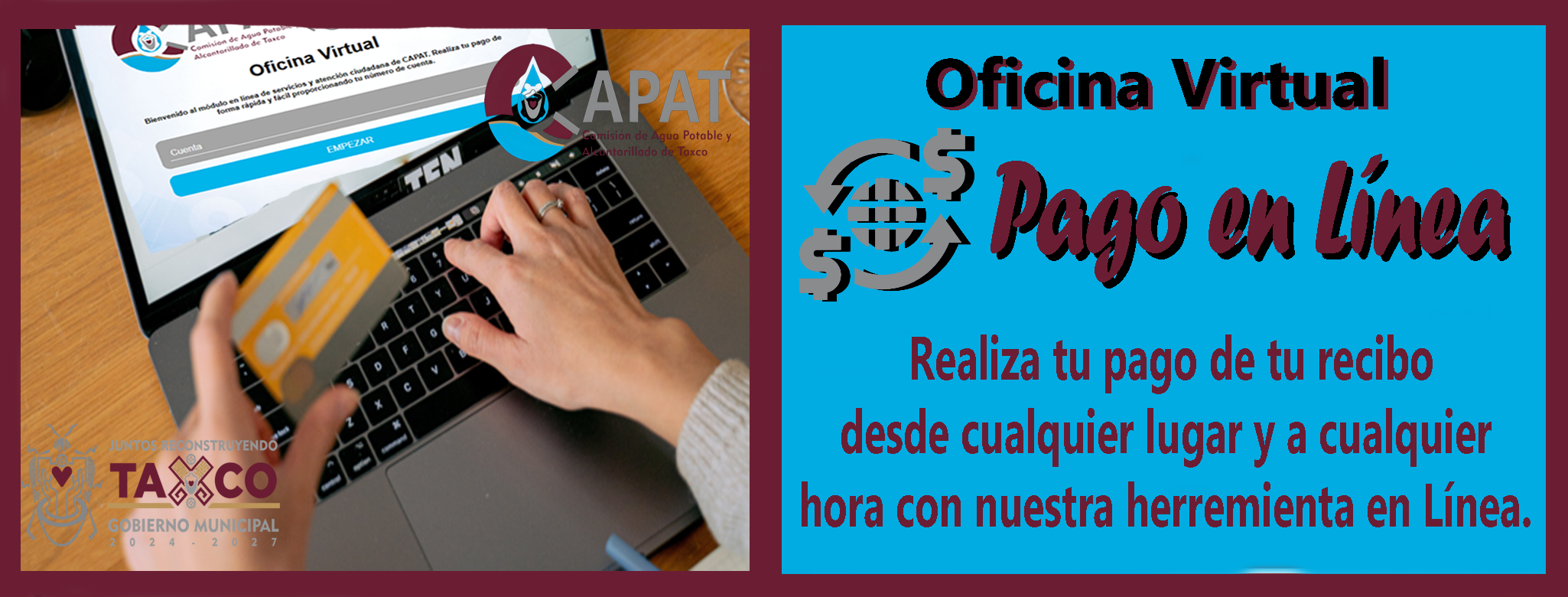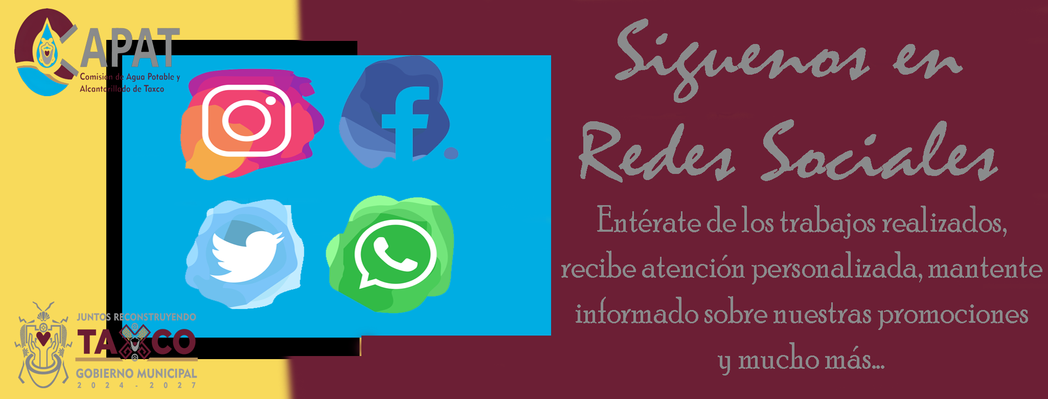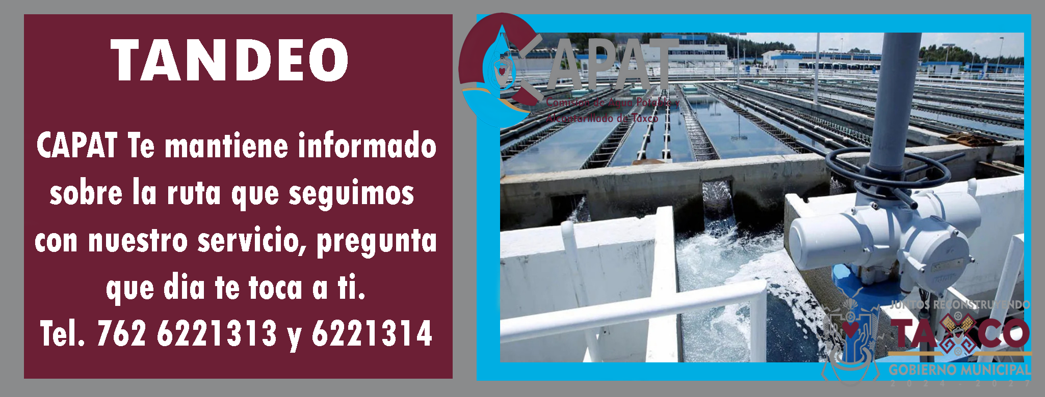 Proporcionar servicios de agua potable de calidad y saneamiento a la ciudadanía Taxqueña, además de promover el cuidado y reúso del agua, a través de un equipo de trabajo comprometido con la atención y satisfacción de nuestros clientes.